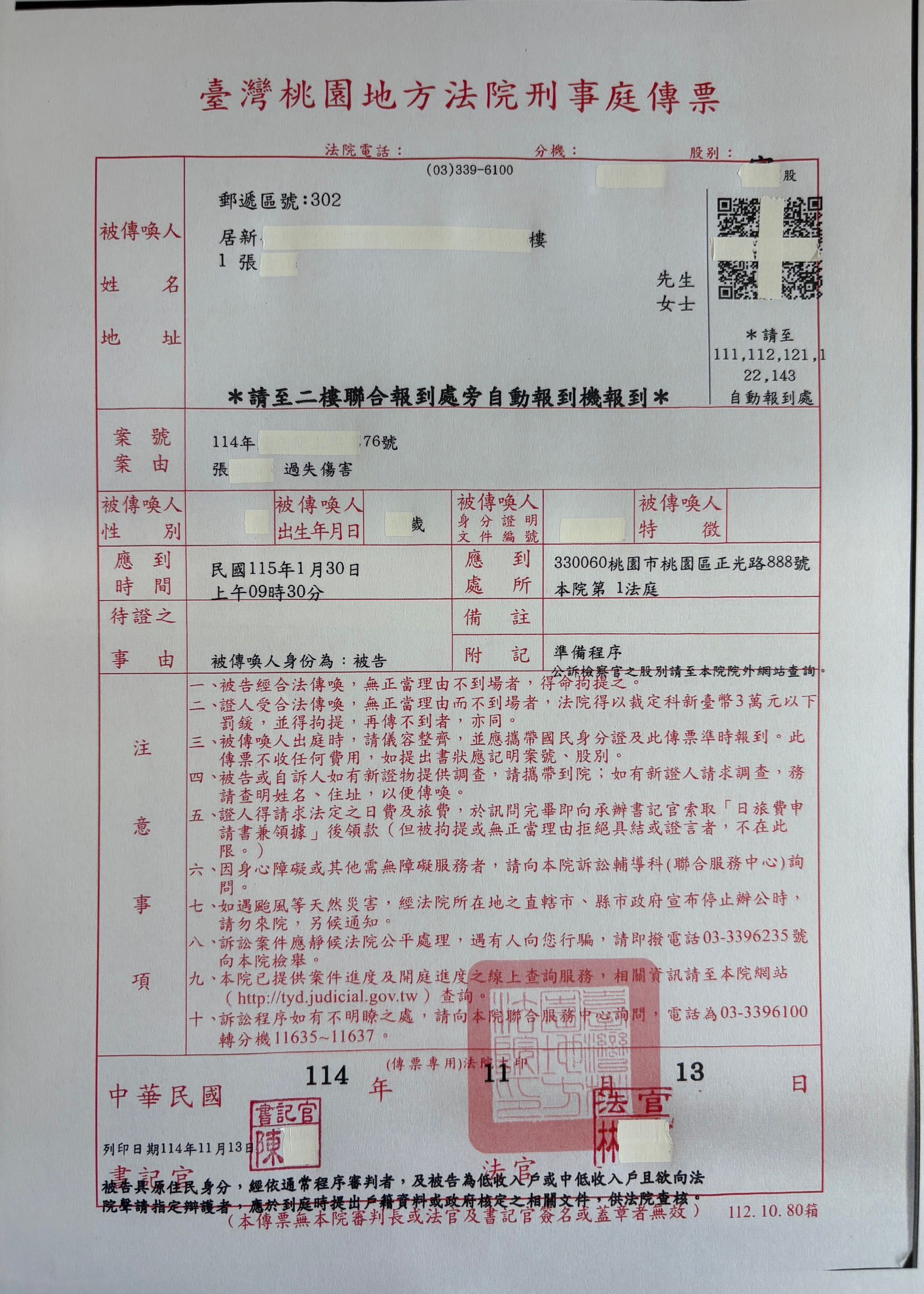 直到今天,刑事法庭開(準備程序庭)
