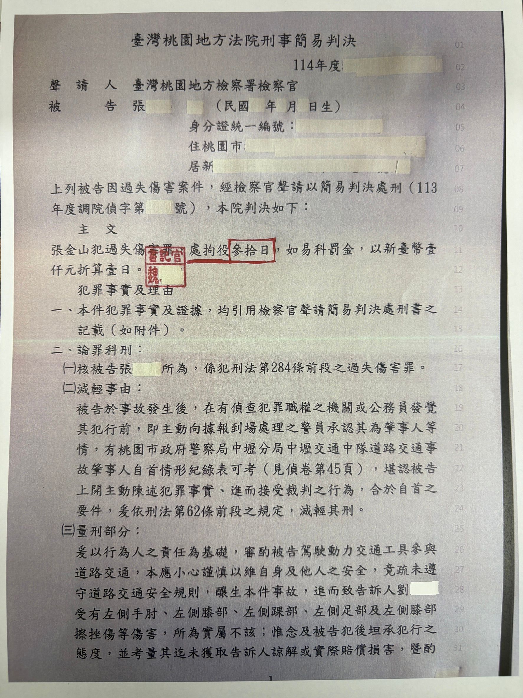 他因為一場交通事故,被檢察官依「過失傷害」提起公訴